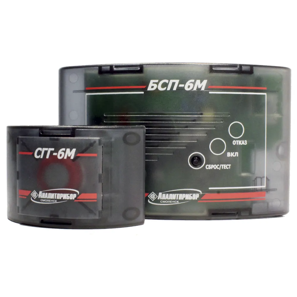 Сигнализаторы СГГ6М-П10, -П10С, -П10Н состоят из блока датчика (БД) и блока сигнализации и питания (БСП1), обеспечивающего световую и звуковую сигнализации с одновременной выдачей сигнала на закрытие электромагнитных клапанов («Клапан 220В»; «Клапан 40В»).Сигнализаторы СГГ6М-В10 состоят из блока датчика (БД), блока сигнализации и питания (БСП2) обеспечивающего световую сигнализацию.Сигнализаторы СГГ6М-П10, -П10С, -П10Н имеют «сухие» нормально разомкнутые контакты реле, замыкающиеся при превышении порога концентрации горючих газов. Коммутационные параметры контактов реле: 220 В, 2,5 А.Для увеличения числа точек контроля к СГГ6М-П10 может быть подключено до 40 вторичных блоков СГГ6М-В10, которые транслируют на БСП1 сигналы «ГАЗ» и информацию о состоянии линии связи между БД и БСП2 (контроль к.з. и обрыва линии). Длина линии связи между СГГ6М-П10 и СГГ6-В10 до 200 м, между БСП и БД до 200 м.Прибор выполнен в соответствии с ПБ 12-368-00 «Правила безопасности в газовом хозяйстве», СНиП 11-35-76 «Котельные установки» и ПБ 12-529-03 «Правила безопасности систем газораспределения и газопотребления».