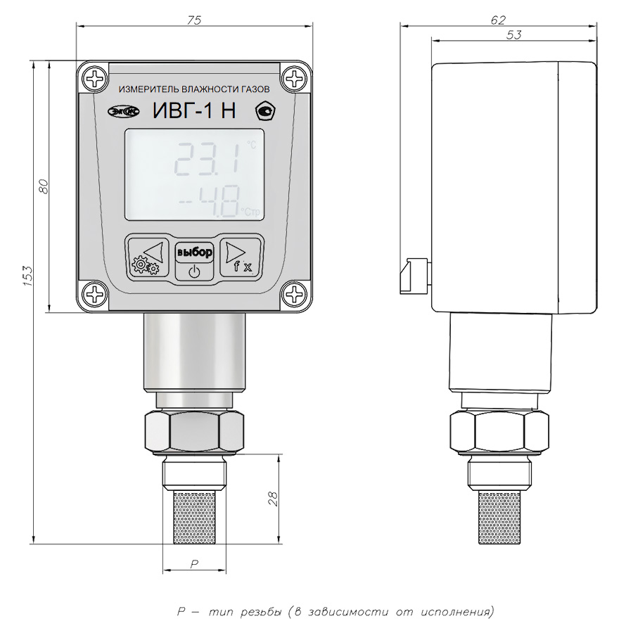 | Габаритные размеры прибора, мм | 75х55х152 (5/8 UNF) |